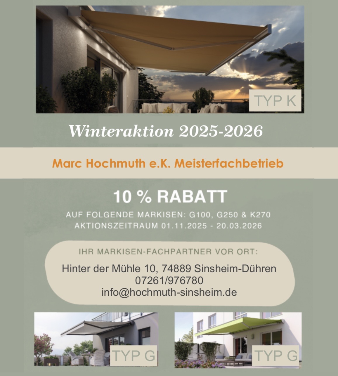 Abverkauf von Mustermarkisen zu günstigen Preisen!