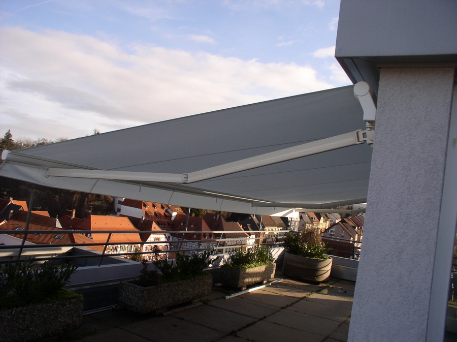 Bei offenen Markisen liegen nach dem Einfahren das Tuch und die Markisenarme frei. Daher eignet sich dieser Markisentyp besonders für die Montage an Stellen, die vor Witterungseinflüssen geschützt sind, wie zum Beispiel unter einem Balkon. Dadurch bleiben Tuch und Technik vor Wind und Wetter geschützt.